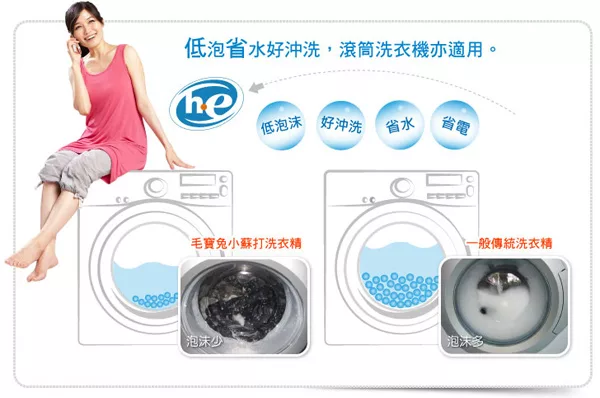 .低泡沫省水節能配方:低泡沫配方,好沖洗、不易殘留、具省水、省電、節能、環保特性。滾筒式洗衣機也適用。